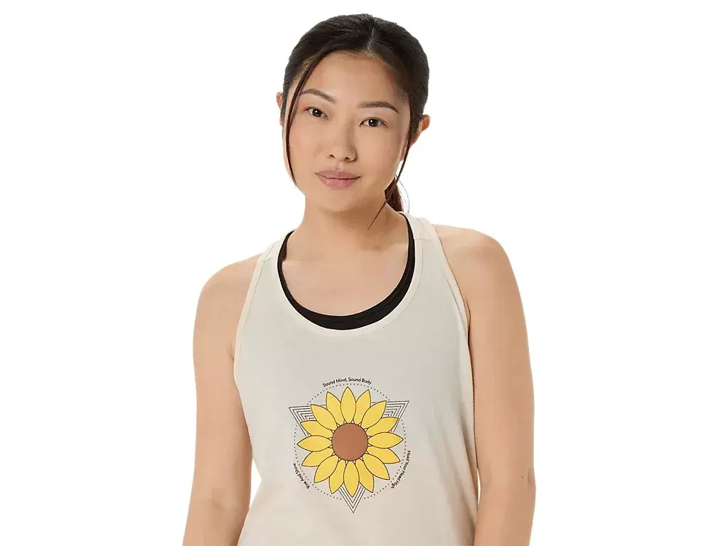 Ta wygodna dzianinowa koszulka z krótkim rękawem oddaje hołd kultowym wpływom słonecznika w historii naszej marki. Grafika przedstawiająca słonecznik znajduje się pośrodku, a jej obwód zdobią różne motywujące hasła.