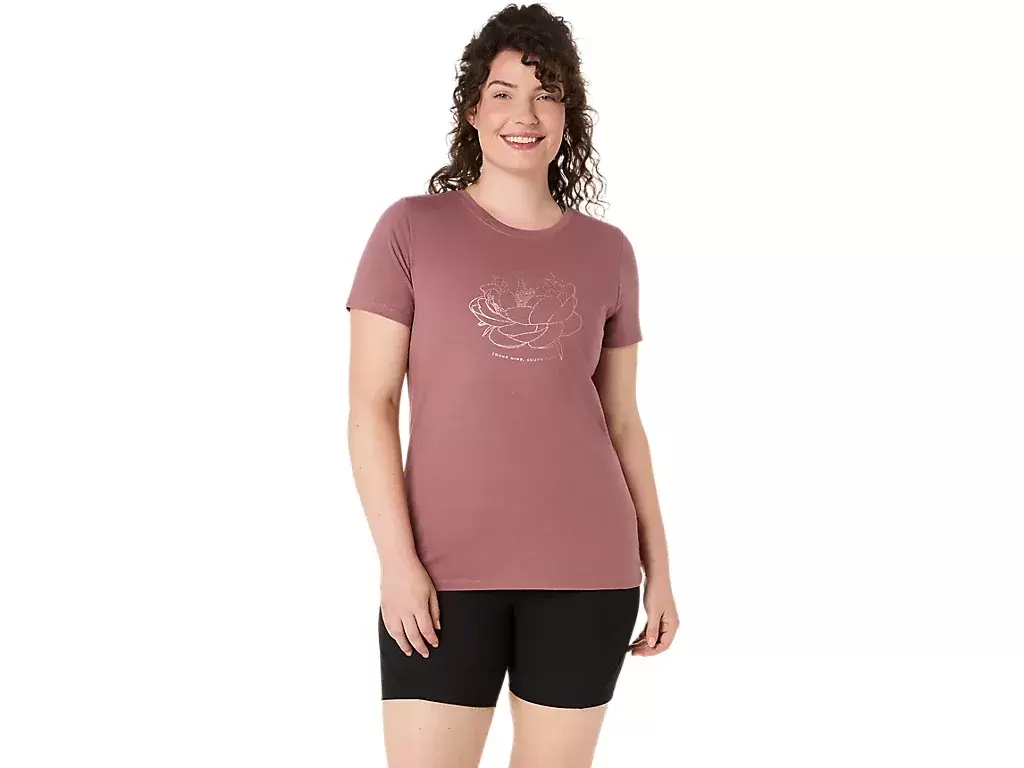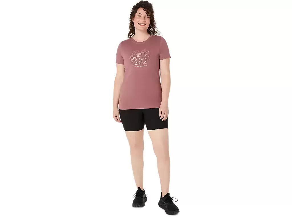 Ta wygodna dzianinowa koszulka z krótkim rękawem inspirowana jest cebulkami piwonii.