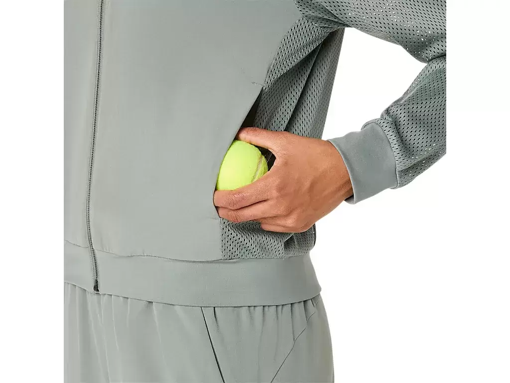 Ta kurtka ma również boczne kieszenie, w których można przechowywać co najmniej dwie piłki tenisowe i odkurzyć gliniane korty.