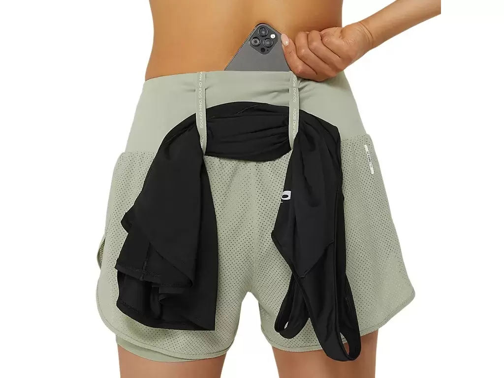 Te spodenki mają wiele łatwo dostępnych schowków, 3 kieszenie zintegrowane w pasie i wiele schowków. Dodatkowo, elastyczny system przechowywania pętelek na kurtkę, koszulkę, ręcznik lub inne niezbędne rzeczy do biegania.