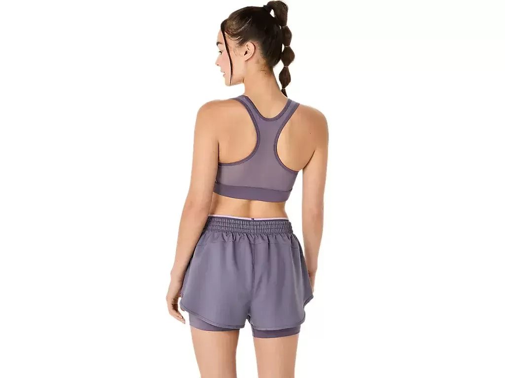 Biustonosz ma płaskie szwy blokujące z przodu i wiązanie w kształcie litery V z tyłu, które pomagają zmniejszyć otarcia, a konstrukcja pleców typu racer back poprawia mobilność, dzięki czemu możesz doświadczyć mniej rozproszenia i zachować komfort.