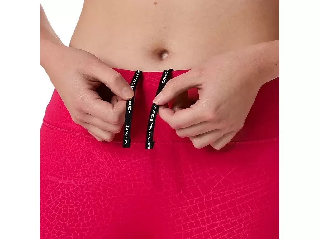 Legginsy mają również szeroki pas zapewniający wsparcie i szybki dostęp do przechowywania piłki w gumce w pasie.