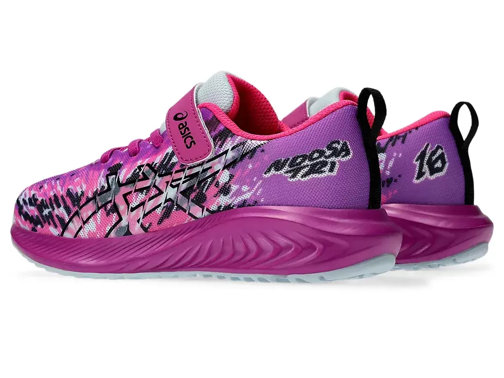 But ten charakteryzuje się cholewką z siateczki, która zwiększa przepływ powietrza i pomaga utrzymać stopy w chłodzie. Żywa kolorystyka buta połączona jest z serią wyrazistych grafik „NOOSA”. Projekt obejmuje również system zapięcia na rzepy dla lepszego dopasowania.