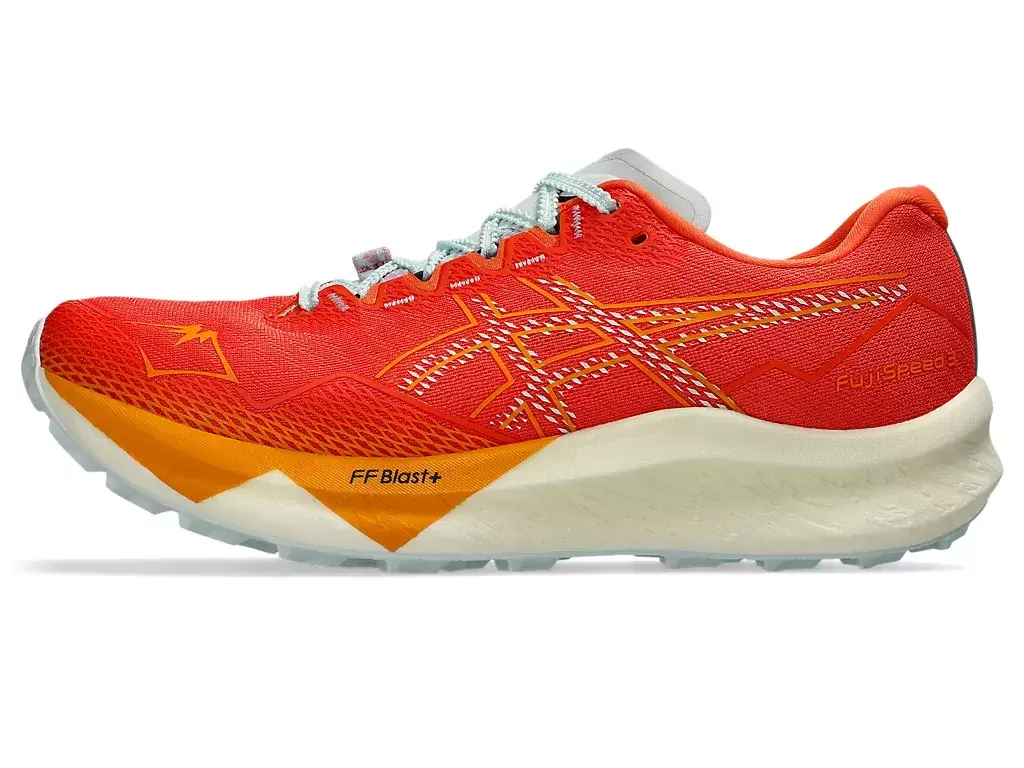 Oczko na sznurowadła w butach FUJISPEED™ 3 zostało zaprojektowane tak, aby zapewnić stopom poczucie zablokowania, co pozwala na szybką jazdę po szlakach.
