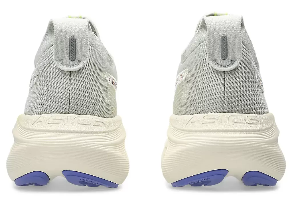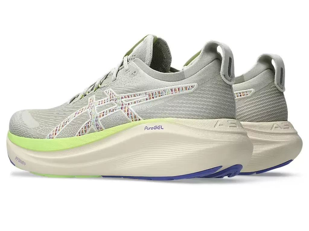 Miękka amortyzacja butów GEL-NIMBUS® 27 NATURE BATHING™ TR sprawia, że czujesz się, jakbyś lądował na chmurach. Ten projekt został udoskonalony, aby zapewnić bardziej miękkie i płynne bieganie. Kolorystyka czerpie inspirację z tropikalnych elementów krajobrazu nadmorskiego, takich jak fale, drewno dryfujące, skały i muszle.