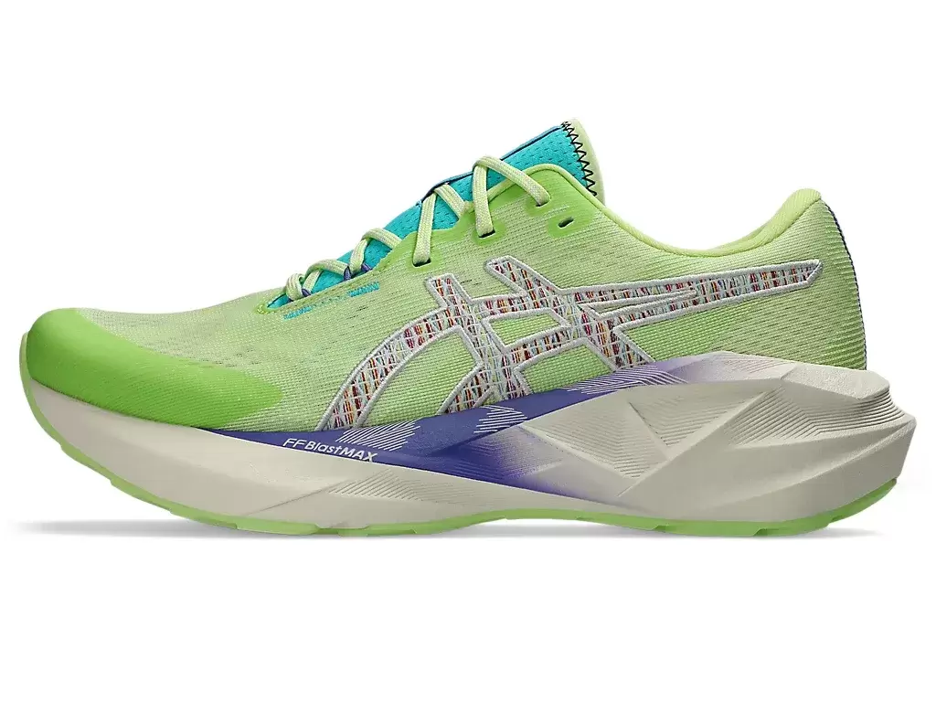 Geometria podeszwy środkowej i zewnętrznej butów do biegania NOVABLAST® 5 NATURE BATHING TR pomaga uzyskać pełen energii bieg. Kolorystyka czerpie inspirację z elementów tropikalnego krajobrazu nadmorskiego, takich jak fale, drewno dryfujące, skały i muszle.