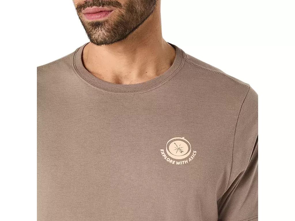Ta wygodna dzianinowa koszulka z krótkim rękawem inspirowana jest malowniczymi morskimi krajobrazami. Grafika na plecach przedstawia napis „ODKRYWAJ Z ASICS” i uzupełnia nadmorski motyw otoczony drzewami.