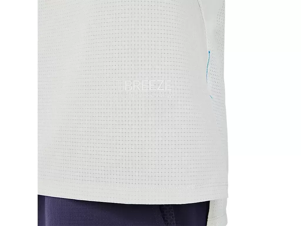 Koszulka ma strategicznie rozmieszczoną strefę chłodzenia i boczne panele z siateczki, co zapewnia lepszą oddychalność.