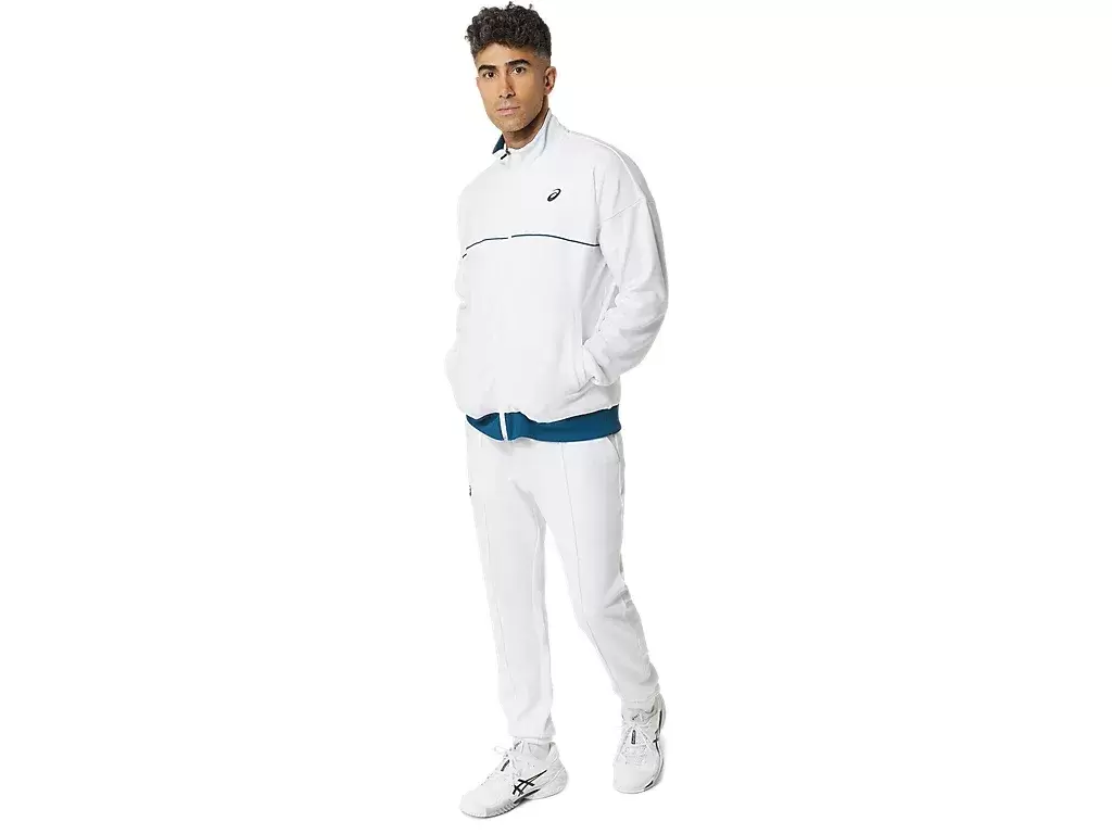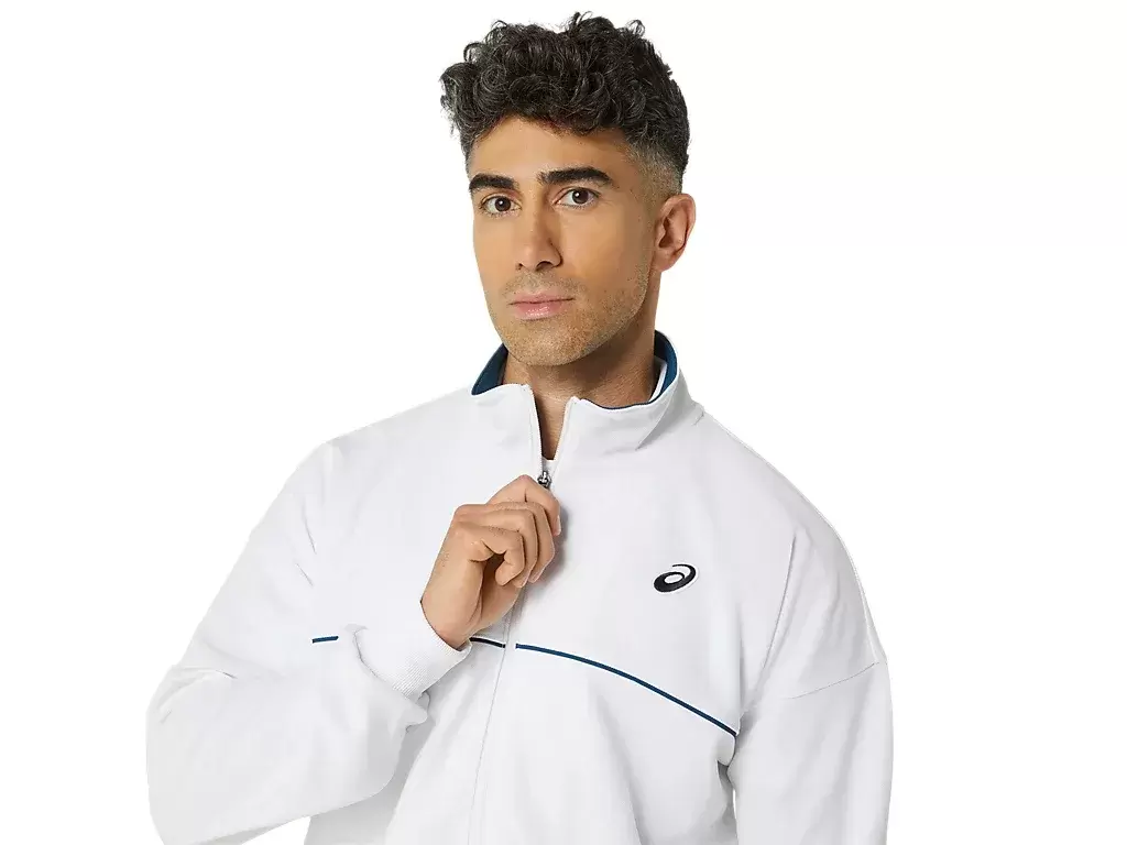 KLASYCZNA DZIANINOWA KURTKA to wygodny element garderoby do rozgrzewki na kortach tenisowych.