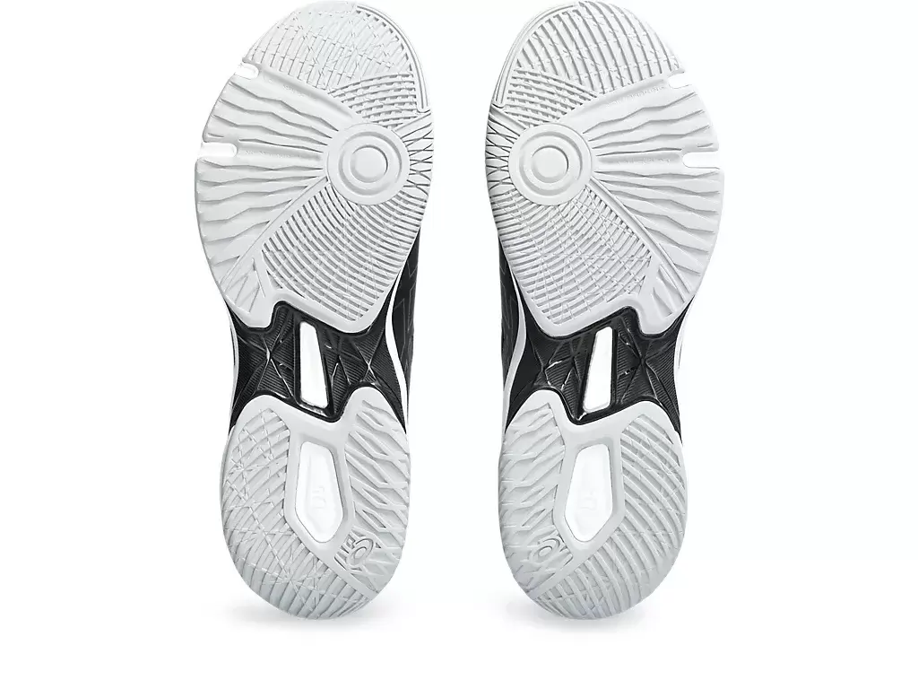 Podeszwa zewnętrzna o zaokrąglonym kształcie i wysięgnik to funkcjonalne elementy wspomagające, które są pomocne podczas ruchów na boki. Jednocześnie rowki zginające w podeszwie zewnętrznej zapewniają większą elastyczność, dzięki czemu możesz swobodniej poruszać się na korcie.